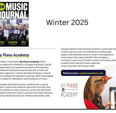 We are pleased to share that My Piano Academy has been featured in the Independent Society of Musicians (ISM) Music Journal, Winter 2025 edition. It is a quiet yet important recognition of the care, values, and philosophy that underpin our teaching.